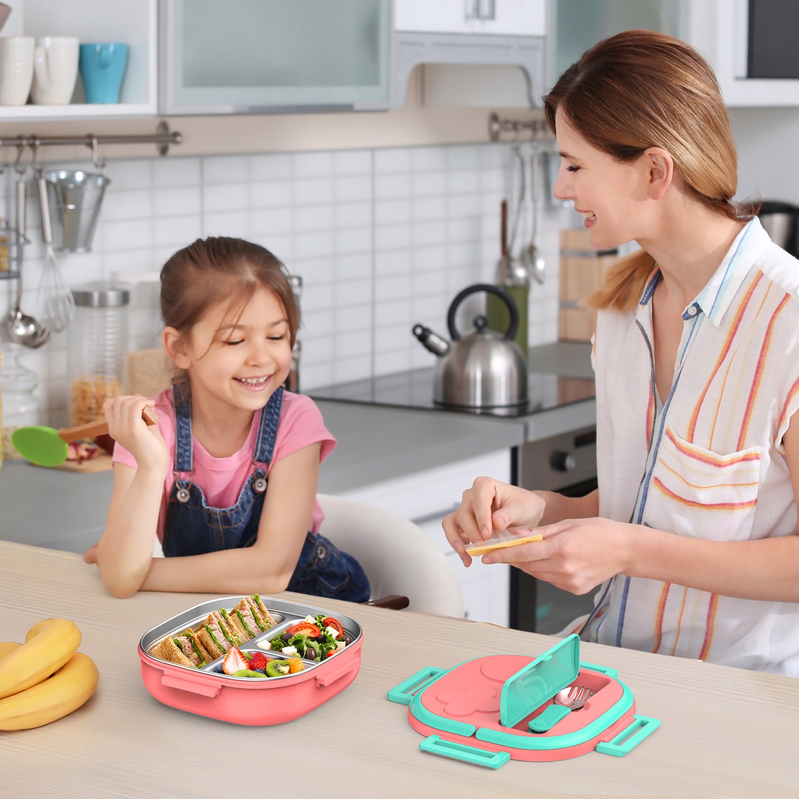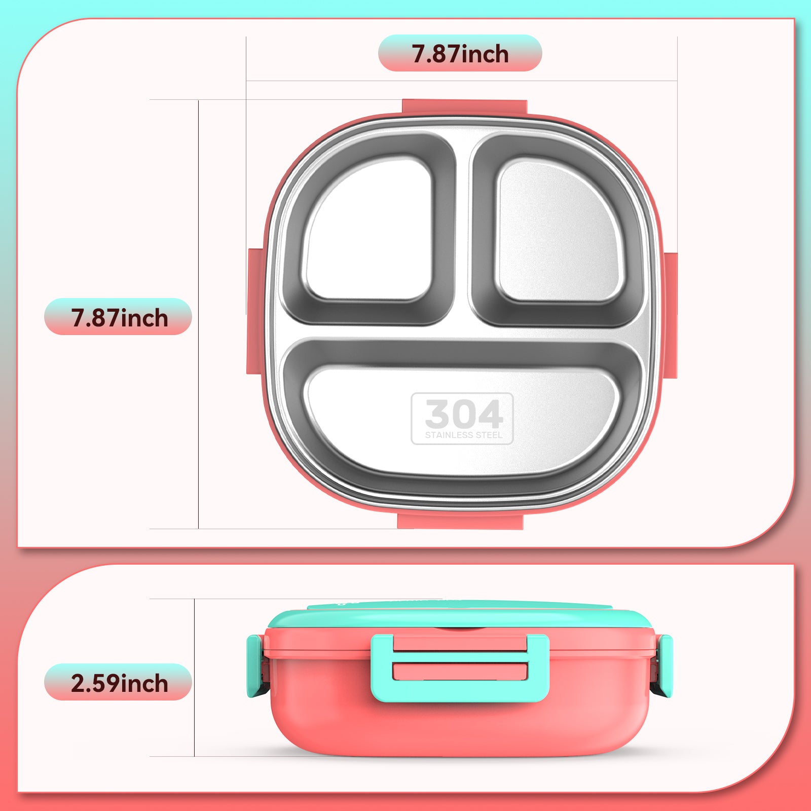 - Compartment design:The stainless steel adopts a 3-compartment design to facilitate children to mix food reasonably and achieve nutritional balance.Whether it is staple food,vegetables or fruits,it can be easily put in,allowing children to enjoy a diverse diet.Portable cutlery included:The lunch box comes with a set of portable cutlery,making it easy for children to enjoy their meals wherever they go.